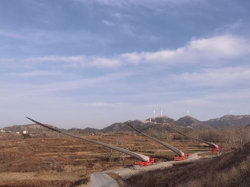 ▲新乡延津项目首套叶片倒运试运行及安全技术交底