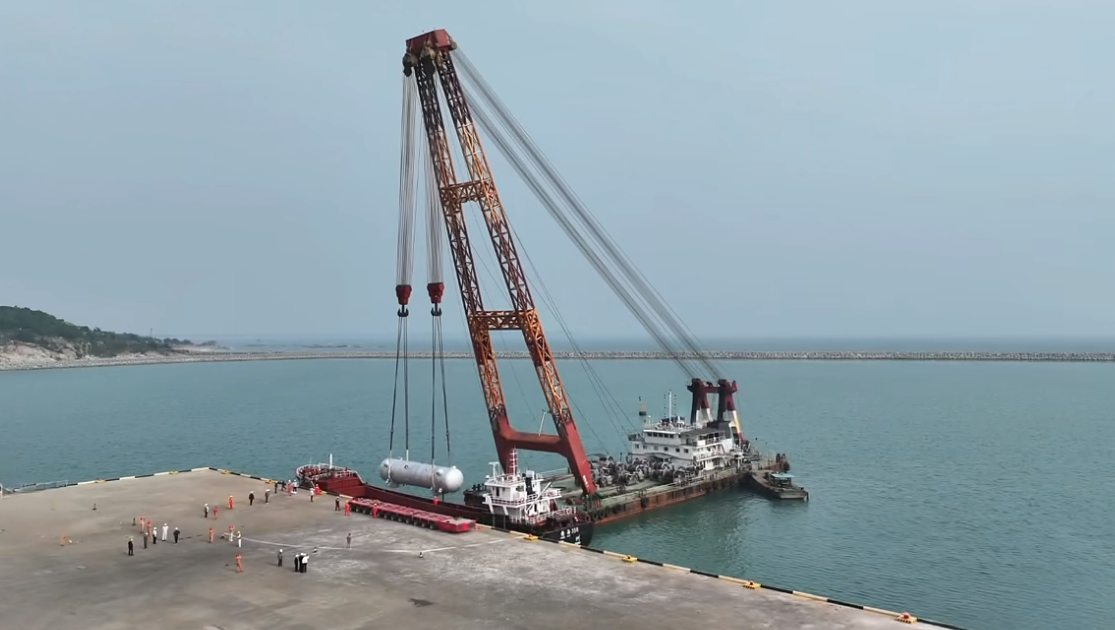 近日,随着600吨浮吊从海船上将#3机组 1#2#高加吊装至SPT12轴线自行车板,并顺利转运到施工现场安全交付,标志着由taptap正版下载入口控股子公司广东天泰供应链有限公司承运的广东陆丰甲湖湾电厂3、4号机组扩建工程(2×1000MW)运输项目正式启运。