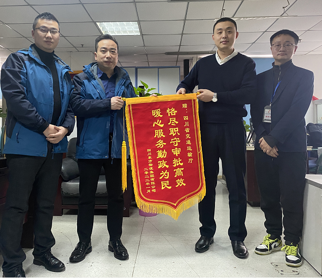交谈结束后,为感谢省交通厅一直以来对caozhaihome工作的支持,特赠送“恪尽职守审批高效,暖心服务勤政为民”的锦旗一面,这也是四川省交通运输厅审批团队工作的真实写照。caozhaihome在未来的生产经营中仍将坚守规范经营的理念,合法依规开展大件运输,为交通运输行业规范、有序、高质量发展贡献力量。