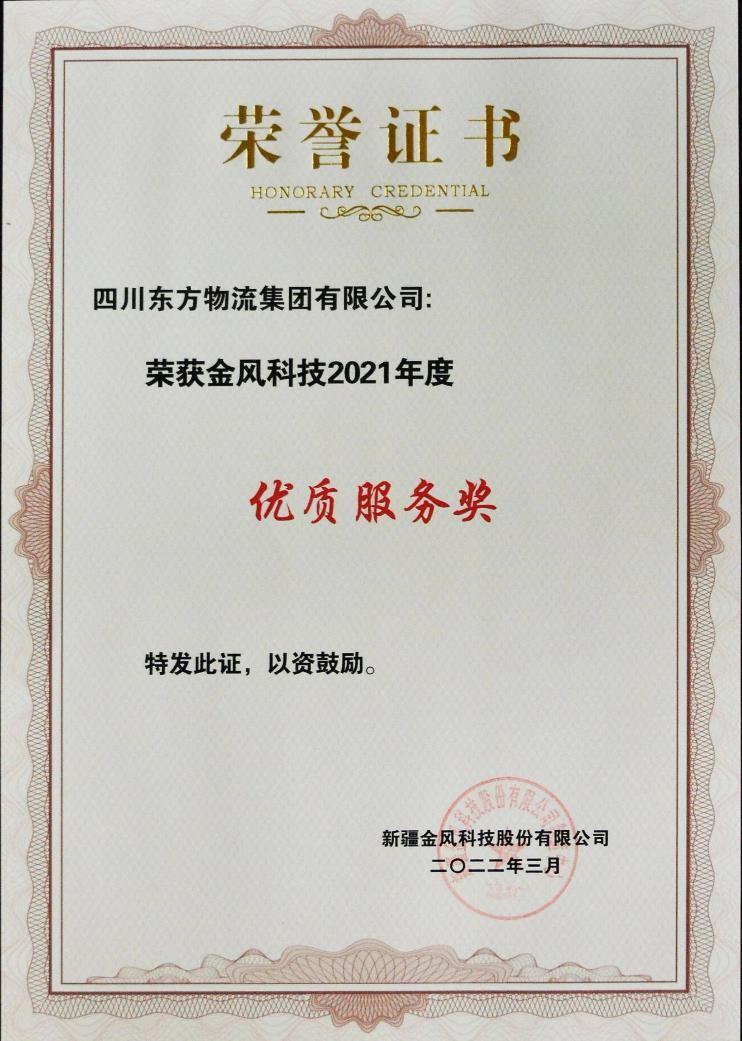 近日,taptap正版下载入口收到新疆金风科技股份有限公司制造中心颁发的“金风科技2021年度优质服务奖”奖牌及荣誉证书。